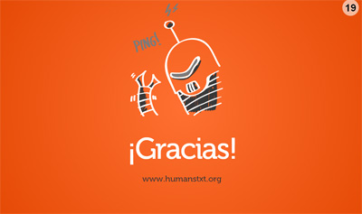 Respecto a lo que a mi me trae por aquí, os dejo el video de la Flash Talk de HumansTXT. La calidad del video no es la que esperaba, así que tras el video os dejo unos enlaces que servirán como complemento: